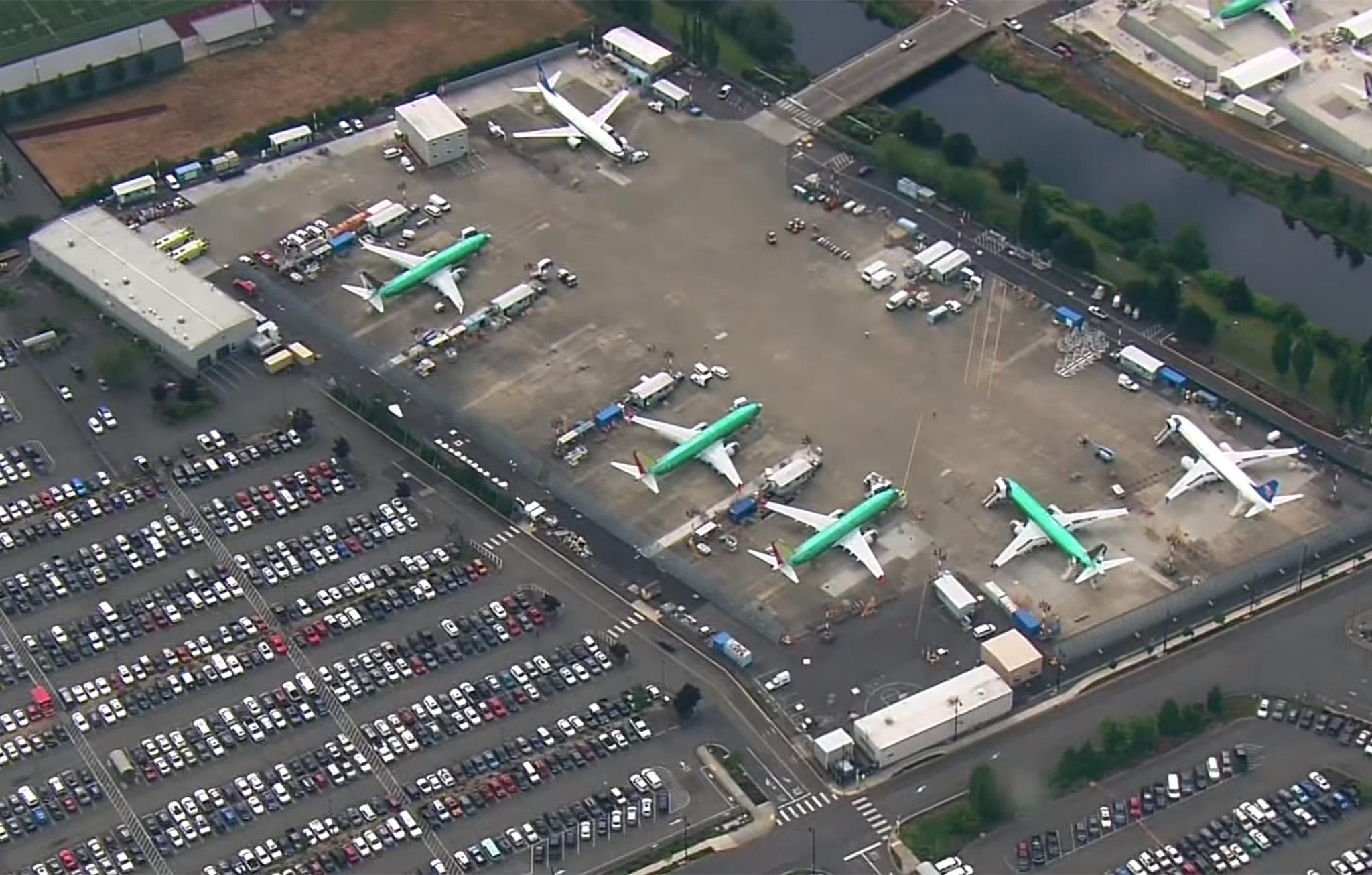 Seen above the car park is the full storage area for planes at Boeing’s Seattle factory