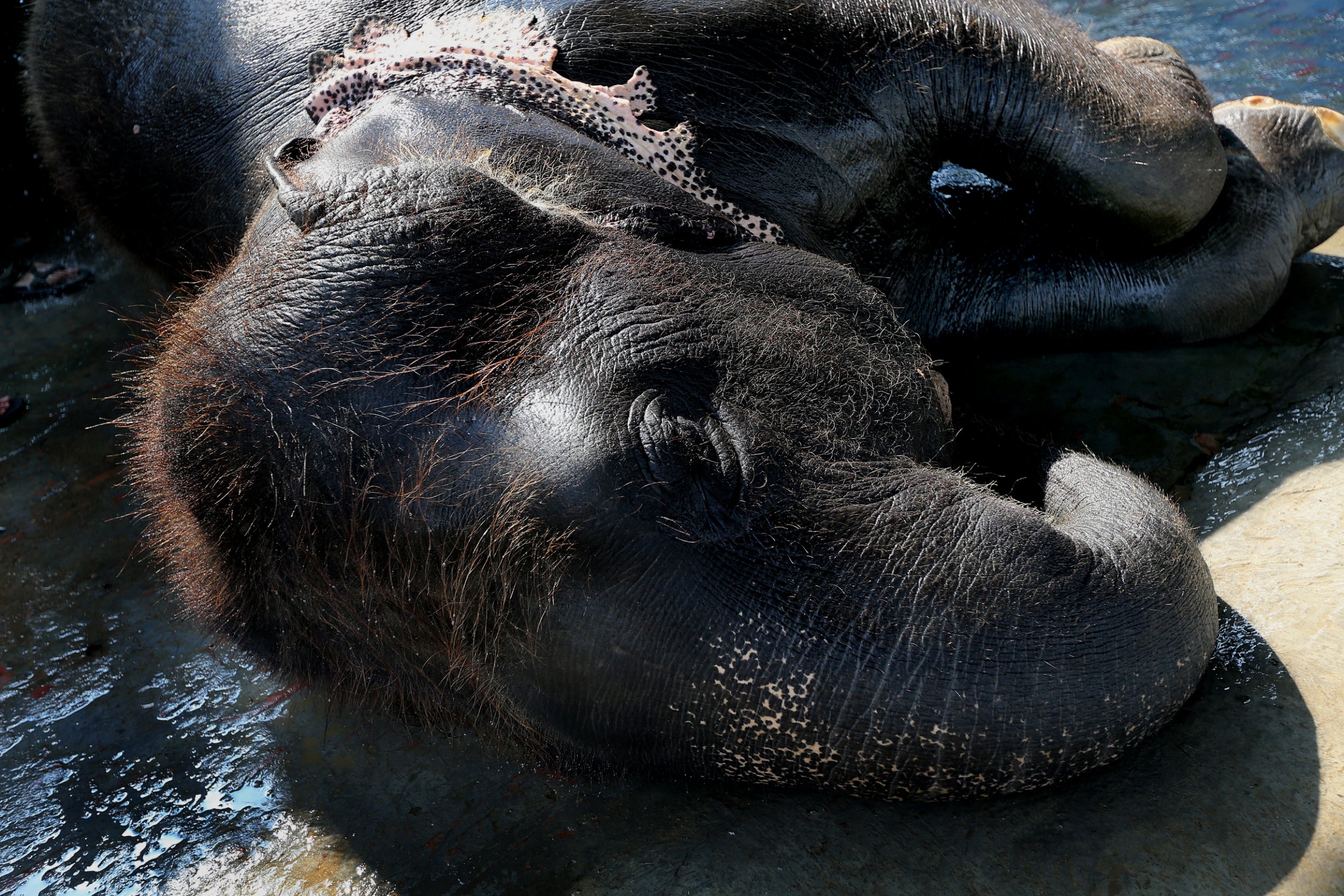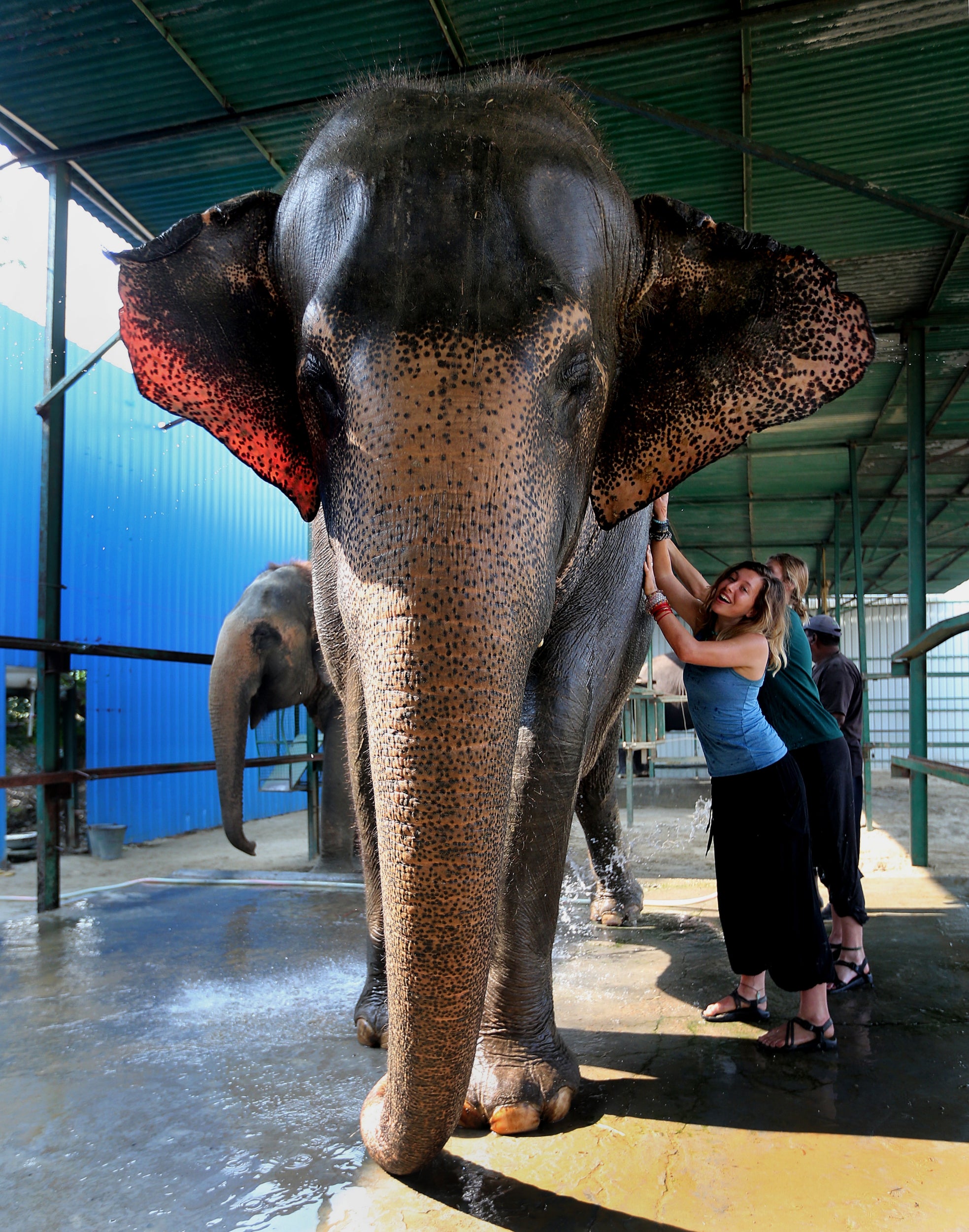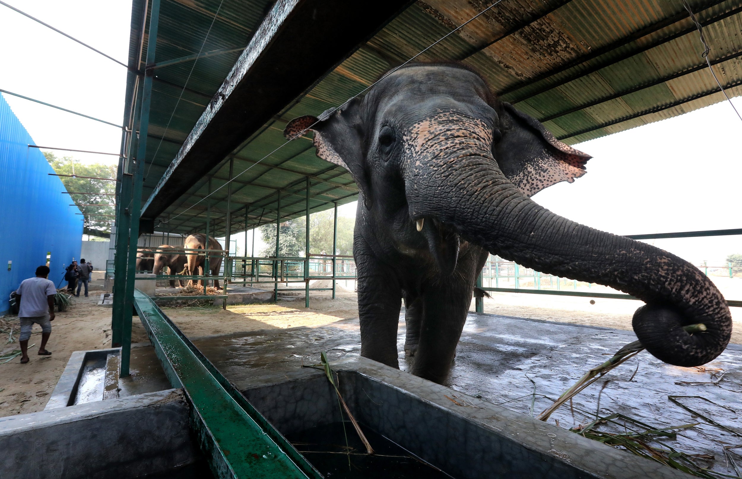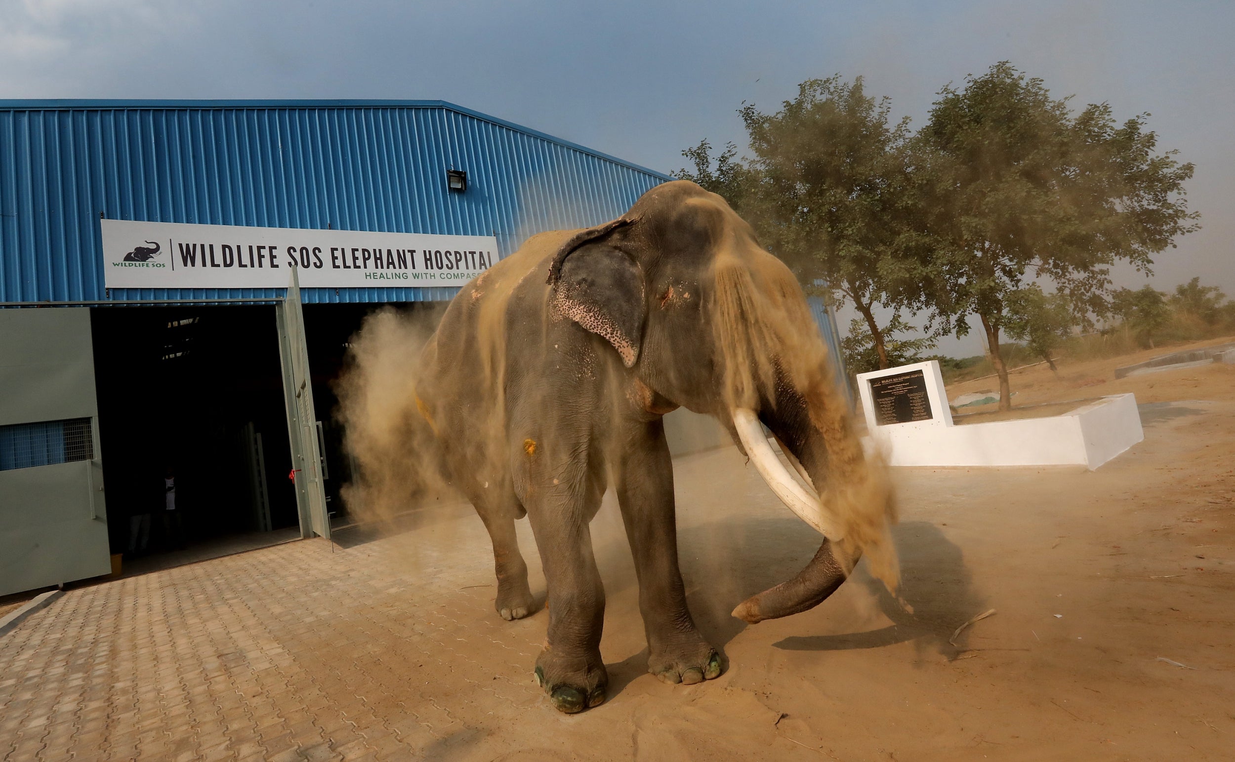 One of the rescued elephants takes a bath in the morning at the Wildlife SOS Elephant Hospital in Mathura, Uttar Pradesh. Wildlife SOS is a conservation nonprofit organisation in India working for animal welfare, elephant conservation and care
