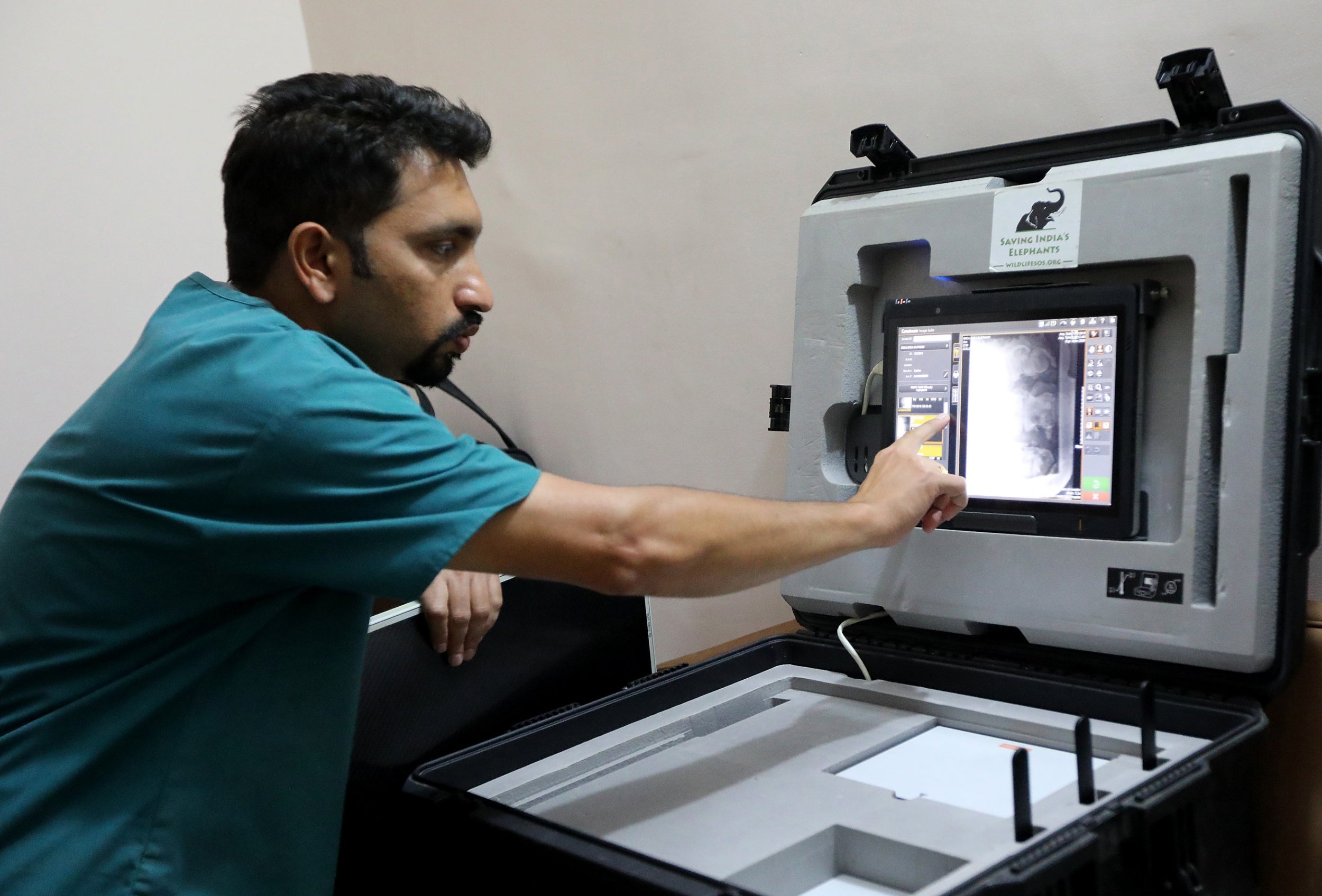 Senior veterinary officer Dr Yaduraj shows scans on the screen of a high-end X-ray device